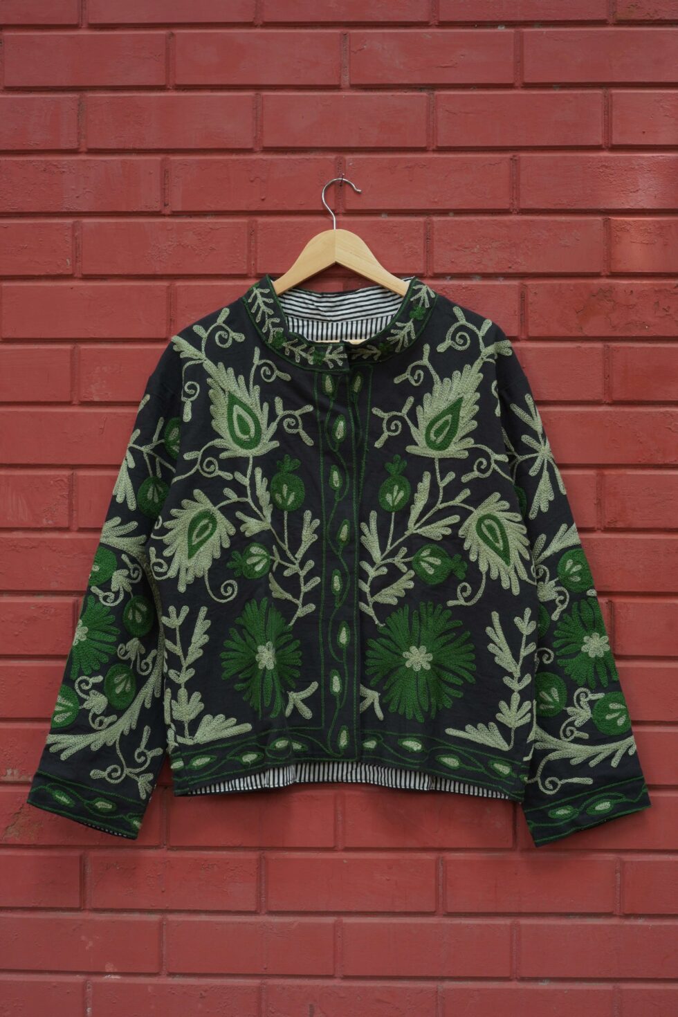 Luxurious velvet jacket featuring intricate Suzani embroidery. Perfect blend of elegance and tradition — ideal for festive and ethnic occasions.