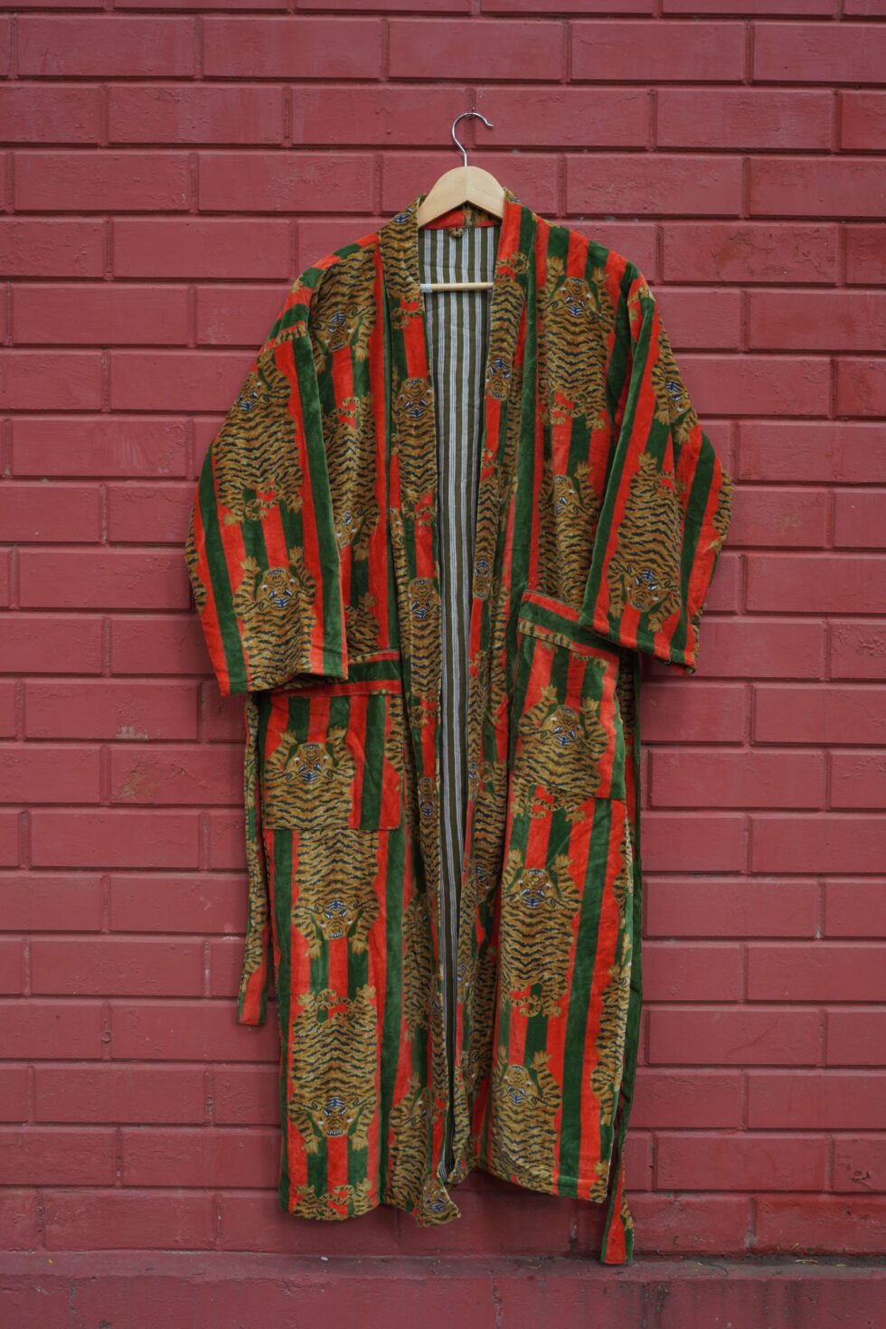 Womens Red Green Velvet Embroidered Jacket with Floral Design